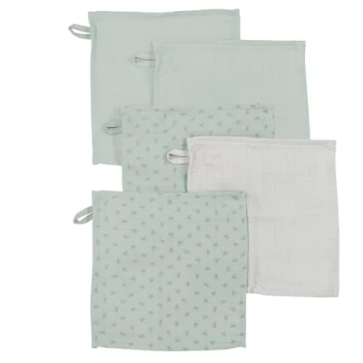 roba Set of 5 Lil Planet Baby Washgloves 25 x cm GOTS and Oeko TEX Certified Organic Cotton Frosty Green