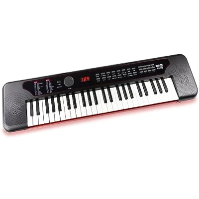 49-Key Touch-Sensitive Digital Piano Keyboard: This portable keyboard piano offers a responsive, touch-sensitive key experience—perfect for both kids and adults looking to explore or improve their digital piano skills. Bluetooth & USB MIDI Connectivity: Connect wirelessly to smart devices via Bluetooth or use the USB MIDI port to link with virtual instruments, music keyboard software, and learning apps for an interactive playing experience. Simply Piano Learning App Included: As a RockJam customer, enjoy access to exclusive content in the Simply Piano app (iOS & Android), making it fun and easy to learn the piano keyboard step-by-step. (Tablet not included.) Removable Piano Keynote Stickers: Included piano note stickers help beginners quickly learn key placements and develop muscle memory, supporting faster progress in keyboard music. Versatile Sound Library: Explore your creativity with 140 tones, 128 rhythms, and 50 demo songs, making this kids keyboard piano a fun and versatile instrument for learning and musical discovery.