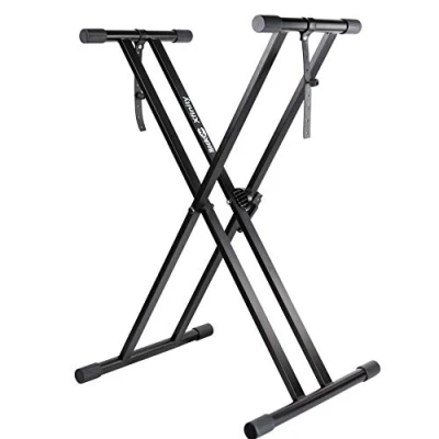 Heavy duty double-x metal construction ensures extra stability for heavy and light digital electronic keyboards Quick-release mechanism allows the user to adjust the height, from 10 - 98 cm; compared to most other stands which only permit five set positions No assembly needed; metal parts are welded together, and no screws to lose High strength support straps attached to keyboard stand secure the keyboard from movement during performance Non-slip rubber end caps add extra stability Depth at the top 355 cm, Depth at the base 46 cm, Width adjustable from 17 cm to 98 cm