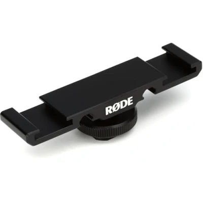 The DCS-1 is a dual cold shoe mount for mounting two microphones or cold shoe accessories on a device with a single cold shoe mount. Constructed from lightweight aluminium, it is sturdy and discreet and is compatible with all RØDE products that feature a cold shoe adaptor. It also includes cable management slots for select RØDE audio cables. When paired with the SC11, it provides a neat, streamlined solution for connecting two microphones to a single DSLR-style camera or recording device, for example dual Wireless GO receivers, or a wireless receiver and a VideoMic. Dual cold shoe mount Rugged alloy construction Lightweight and discreet Sturdy base with ¼-inch thread