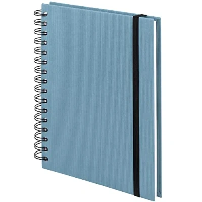 A5 Wiro bound Notebook with elasticated strap Denim ribbed cover 80 sheets bright white plain paper Part of the S.O.H.O. complete office system Handmade in Europe to the highest specification