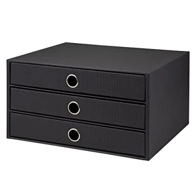 3 drawer storage box in A4 Black ribbed cover 3 Drawers with metal ringed finger holes perfect for small items Part of the S.O.H.O. complete office system available in 12 colours Handmade in Europe to the highest specifications
