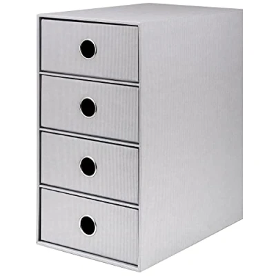 4 Drawer Storage Box Stone ribbed cover Drawers with metal ringed finger holes Part of the S.O.H.O. complete office system available in 12 colours Handmade in Europe to the highest specifications