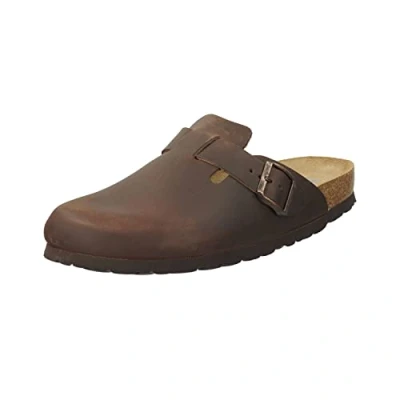 Rohde Grado 6698 Men's Clog Mules Leather Buckle Comfortable, brown, 43 EU