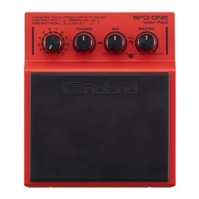 Your Own Samples, Backing Tracks, and Click Tracks—In the Palm of Your Hand. The Roland SPD::ONE WAV PAD is a new type of digital percussion pad, one that allows any musician to perform with their own sounds and samples. Importing audio files is as simple as connecting the SPD::ONE WAV PAD to a PC or Mac and dragging your WAV files into the drive that appears. Whether you need full-length backing tracks or one-shot samples, your sounds can be loaded and played in seconds. Internal 4 GB drive can hold up to 360 minutes of stereo audio. Once you’re ready to go, the unit’s robust-yet-sensitive pad can be played with sticks, hands, or feet, and trigger threshold settings are easily adjusted with intuitive controls. Powered by batteries or AC, the portable SPD::ONE WAV PAD can be used on the floor or a tabletop, or mounted to any rig or drum setup with the included adapter. Operation is simple, even for those musicians who are not technical; just by using four knobs on the control panel, you can change the sound, volume, balance, and more. Whether you’re a drummer, percussion player, guitarist, DJ, or vocalist, the SPD::ONE WAV PAD is a simple and flexible way to expand your sound palette and invigorate your performances. Main stereo output, plus stereo headphones output for monitoring.