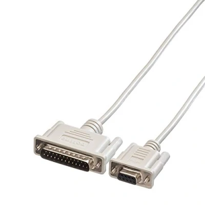 Cable with a 9-pole D-Sub socket and a 25-pole D-Sub plug Connects PC and modem Connector casing moulded with special plastic, thus optimal strain reduction, no cable breaks Very good screening prevents data loss and electromagnetic interference Hand locking screws