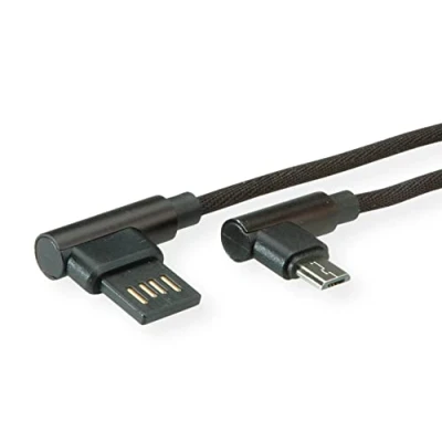 Roline USB 2.0 Cable Angled Type A rev Micro B ST/ST Black 0.8 m