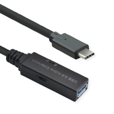ROLINE USB 3.2 Gen 1 Active Repeater Cable, Type A C, Black, 15 m