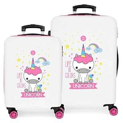 Roll Road Little Me Suitcase, White, 46x65x23 cms, Unicorn Set Trolleys