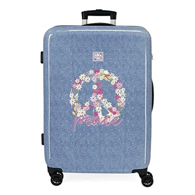 Suitcase 68cm x 48cm x 26cm. It has a capacity of 70L and weighs 3.7kg. Made of ABS, a stiff and lightweight material. Practical interior with two compartments, a zip pocket on one side and elastic bands on the other. Four multi-directional swivel dual wheels for comfortable riding, smooth rolling and effortless manoeuvrability. Side combination closure for safe travel and protection of your personal items.
