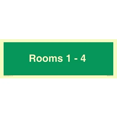 No Symbol This sign is made from plastic semi-rigid photoluminescent Landscape Letterbox Sign Text: Rooms 1 - 4