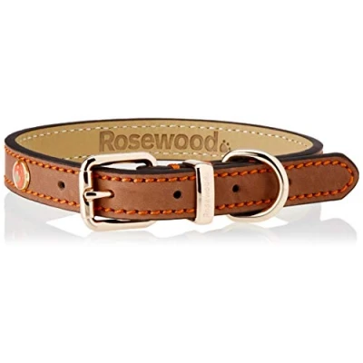 Rosewood Luxury Leather Dog Collar, Brown,14 18 inch
