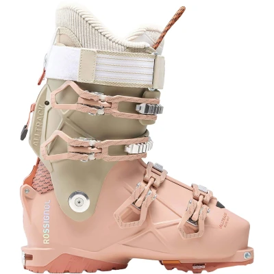 The Rossignol alltrack elite 110 Women lt gw is a responsive freeride boot for women who ski both on- and off-piste. It offers a precise fit and strong downhill support, with added comfort for touring. The step in feature makes entry easier, without affecting performance. A solid choice for advanced skiers looking for versatility.