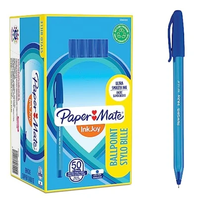 Smooth, glossy ink keeps your thoughts flowing and takes the drag out of writing Reliable and smooth to write clean lines from beginning to end 0.5mm ultra fine tip for precise, fluid writing Colourful ink in your choice of 10 vivid shades adds fun to every page Includes: 50 blue ballpoint pens