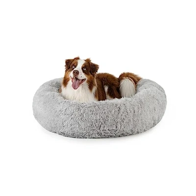 𝗛𝗜𝗚𝗛 𝗖𝗢𝗠𝗙𝗢𝗥𝗧. Our luxurious donut bed for pets offers the ultimate sleeping space with its cosy plush material and thick, soft filling. Perfect for dogs and cats who love to snuggle up and feel like they're sleeping on clouds. 𝗥𝗘𝗦𝗧𝗙𝗨𝗟 𝗦𝗟𝗘𝗘𝗣. The carefully padded, raised edge of our pet bed supports your pet's head and neck, promoting a sense of security and improving sleep quality. Ideal for pets looking for extra comfort. 𝗔𝗡𝗧𝗜-𝗦𝗟𝗜𝗣 𝗙𝗨𝗡𝗖𝗧𝗜𝗢𝗡. An anti-slip coating on the underside of the pet bed ensures stability and prevents it from slipping on tiles or wooden floors. This means that the cosy bed always stays in place, no matter how much your four-legged friend jumps into it. 𝗙𝗢𝗥 𝗘𝗩𝗘𝗥𝗬 𝗦𝗜𝗭𝗘. Whether you have a tiny puppy or a large dog - with diameters from 40 cm to 120 cm, we offer the perfect bed for every size. Your cats will also find the ideal retreat in our variable size options. 𝗦𝗧𝗬𝗟𝗜𝗦𝗛 𝗗𝗘𝗦𝗜𝗚𝗡. Customise the ambience of your home by choosing from 3 elegant colours. Our dog bed blends seamlessly into any interior while providing a cosy resting place for your pet. 𝗩𝗘𝗥𝗦𝗔𝗧𝗜𝗟𝗘 𝗜𝗡 𝗔𝗡𝗬 𝗣𝗟𝗔𝗖𝗘. Whether next to your bed, in a quiet corner of the living room or in a sunny spot next to the window - our dog cushion is the perfect resting place for your pet anywhere in your home or office. Experience how your pet snuggles up and relaxes, no matter where you place it.