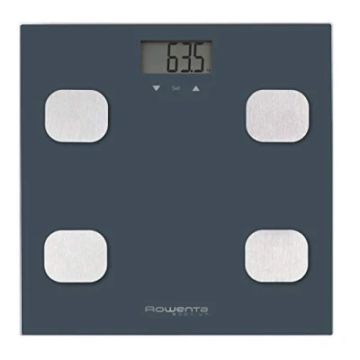 Rowenta Body Up Body Fat Scale - Track your body composition with total ease Full monitoring and control: weight, fat and BMI indicator for a digital bathroom scale with body fat gauge to maintain close control of your body composition Easy to read: a large crystal clear LCD display makes it easy to track the weight at a glance; for the whole family: stores up to 8 profiles High capacity weight measurement: up to 150kg; 100g scale measurements: for detailed progress tracking For immediate use: ready to go out of the box with a high performance CR3032 lithium battery included