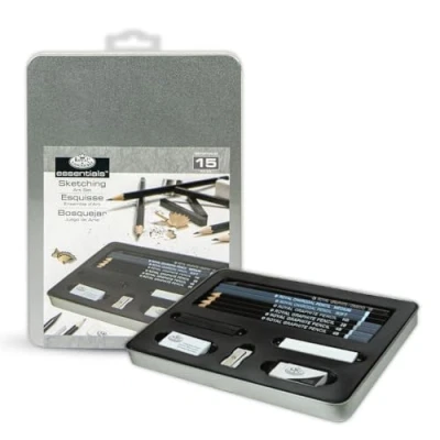 Advance Sketching Tin Art Set is ideal for beginners, students and experienced artists Compact set, withall the necessary items needed Embossed silver tin with a hinged lid, measuring 215mm x 155mm x 20mm 13 products of a very high quality Royal & Langnickel is one of the main art brands within the UK