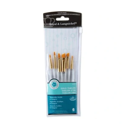 Royal and Langnickel Filbert Angular Taklon Variety Brush Set Gold (Pack of 6)