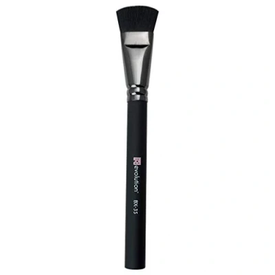 R evolution a true revolution in cosmetic brushes from Royal & Langnickel^All R evolution cosmetic brushes are made from synthetic Natrafil fibers that mimic the performance and feel of the finest natural hair^Each Natrafil fiber features a micro studded surface, that allows for precise pick up, release and blending of even powder make-up^Soft touch matt black acrylic handle with a slight rubberized feel^This newly developed synthetic fiber does not shed or break like natural hair, cleans easier and dries faster^Developed and used by Emmy Award winning make-up artist Kevin James Bennett