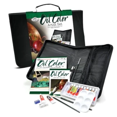 Perfect for painting on the go Includes oil paints, brushes, paint pad, palette, spatula, pencil, rubber, sharpener and instruction book A black fabric zipper case is included