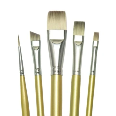 Classified as our highest quality standard. Synthetic, multi-diameter fibre Nickel-plated brass ferrule. Gold acrylic handle with beveled edge., Manufacturer: Royal & Langnickel