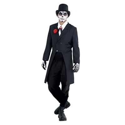Skeletons, one of the favorite costumes for boys and girls. This authentic candy skeleton costume is an original Rubies product. Also available Skeleto glow in dark costume and Chuli Skeleton Costume. This Skull Catrin costume for men includes suit with jacket and pink, gloves, hat and half shirt. Properly packaged in hanger bag. This costume is made of polyester, comfortable and durable material for long hours of play. For children over 14 years old and adults men and women. One size fits all Read the measurement table in the images. Occasions: Costume for girls and boys to celebrate Halloween, Christmas, Carnival, Easter, Prom, Book Day, Children's Day, Cosplay, Party, Festivals, Vacation, Contest, Wedding, Birthday, School Dance, Photo Shooting, Scenic Performances, Ceremonies and Other Occasions., Manufacturer: Rubie's