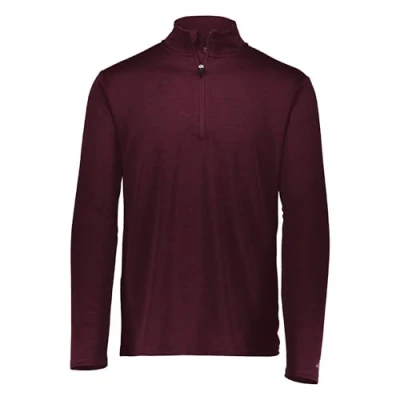 Lightweight, stretch fabrication provides full mobility Dri-power moisture wicking technology keeps you dry and light Odor protection helps to keep fabric fresh Quarter zip front offers adjustable coverage with zippered garage for less irritation Stylish heathered look