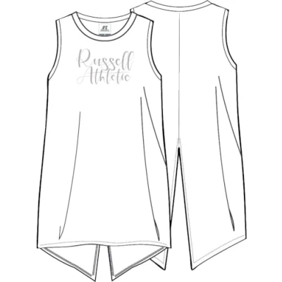 Russell Athletic Women's Scripted Split Back Long Tank top, White, M