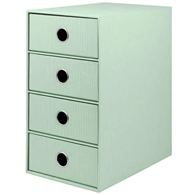 4 drawer storage box 175mm x 310mm x 250mm mint ribbed cover with white lining drawers with metal ringed finger holes Part of the S.O.H.O. complete office system available in a dozen colours Handmade in Europe to the highest specification