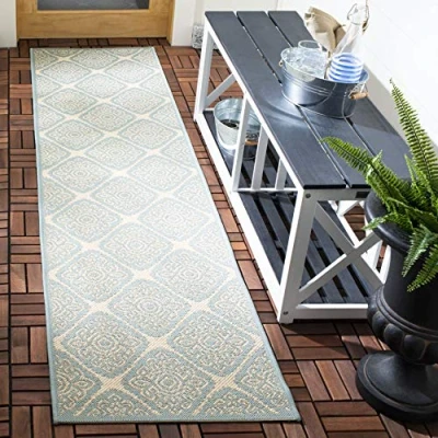 TRENDY STYLE: Medallion rug design from the Safavieh Beachhouse Collection woven in Ukraine enhances any outdoor space. This durable design can also be used for kitchen, playroom, nursery or any high traffic area. Available in many colors and sizes. HIGH QUALITY & DURABLE DESIGN: Woven of 80% Polypropylene / 20% Polyester this machine made area rug has a plush & comfortable 0.05 cm low pile and is soft underfoot. STAIN RESISTANT & FAMILY-FRIENDLY: Expertly woven from enhanced soft synthetic durable fibers that are stain resistant and non-shedding, the rug doesn't trap dirt or debris making it pet-friendly and easy to clean. Perfect for high traffic areas. EASY CARE & MAINTENANCE: Outdoor rugs are made from fibers that are water and stain resistant and deter mildew to withstand natural weather elements. Rinse with a garden hose to remove excessive grime. Dry over a railing in the sun on both sides. THE BRAND: Safavieh has been a trusted brand and global leader in home & living for over 100 Years. Experts in making quality, durable, trendy designs, the brand mixes materials, colors and styles to create a collection of rugs, furniture and lights