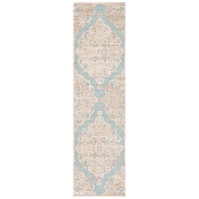 SAFAVIEH Transitional Rug for Living Room, Dining Bedroom Paradise Collection, Short Pile, in Stone and Aqua, 66 X 244 cm