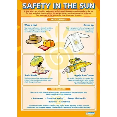 Safety in The Sun PSHE Posters Gloss Paper measuring 850mm x 594mm (A1) PSE Classroom Education Charts by Daydream