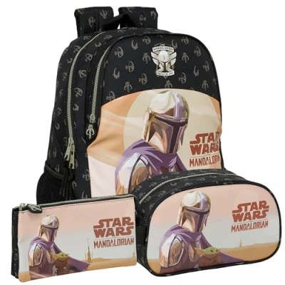 Safta THE MANDALORIAN 3 piece pack backpack, pencil case and Unique design officially licensed