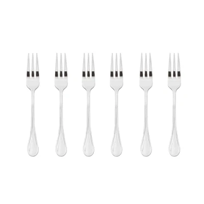 The Sambonet Royal Collection 18/10 stainless steel dessert fork set is ideal for desserts and fruit Elegant design with double relief edge and the original Sambonet embossing on the handle Mirror shine polish for a brilliant finish that perfectly accentuates shape and details 3mm thick for a solid, comfortable and well balanced grip. Dishwasher safe, durable and perfect for everyday use Box contents: 1 x set of 6 Sambonet Royal dessert forks, made of 18/10 stainless steel, Italian design and flavour, Manufacturer: Sambonet Paderno Industrie