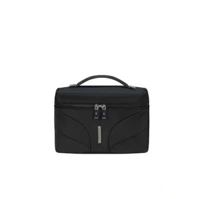 Cosmetic case: 24 x 14 x 16 cm Eye-catching design with shiny metal details Samsonite - Logo plate The inner lining is made from 100% recycled post-consumer PET which is part of our Recyclex Material Technology Initiative. The coating and the back of the fabrics are made from new materials.