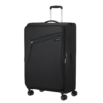 Spinner 77 expandable (large suitcase: two-week trip): 47 x 28/31 x 77 cm - 103/111 L - 2.80 kg Our lightest softside to date: only 4 pounds for the Spinner Model 55 Multiple cabin luggage versions including underseater, spinner and upright models Large packing volume and expandability of check-in size The inner lining and inner zip tape are made from 97% recycled PET. The coating and backing material are made from new materials