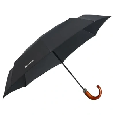 SAMSONITE Wood Classic S 3 Section Auto Open Close Crook Regenschirm, 33 cm, Black