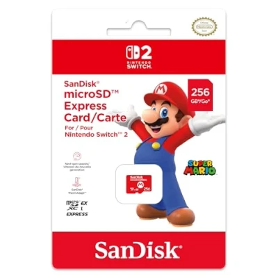 OFFICIAL NINTENDO: Licensed memory card specifically designed and optimised for Nintendo Switch 2, ensuring complete compatibility and reliable performance STORAGE CAPACITY: 256GB of high-speed storage space allows you to store dozens of games and downloadable content from Nintendo eShop EXPRESS SPEED: Features microSD Express technology for next-generation transfer speeds, enabling faster game loads and seamless gameplay THERMAL PROTECTION: Includes SanDisk ThermalAdapt technology to maintain optimal performance during extended gaming sessions PLUG-AND-PLAY: Simple installation with automatic formatting for immediate use with your Nintendo Switch 2 console