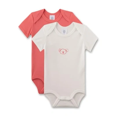 Baby bodysuit short sleeve (double pack) pink and beige - This baby bodysuit offers excellent wearing comfort for your baby and is particularly gentle on sensitive skin. Our bodysuit for newborns also impresses with its durable quality and pretty design. Daily use – with practical press studs, our baby bodysuit is perfect for everyday use and everyday use. Whether at home, playing or on the go, the baby bodysuit makes changing easier and looks pretty at the same time. Organic cotton – Our baby clothes are made from 100% organic cotton, we attach special importance to the GOTS certification of our bodysuits. Our body is therefore free from harmful substances and particularly comfortable for the skin. Our GOTS test number is CERES-0352. Various variations: plain or with pattern? We offer our bodysuits in different sizes and also in many cute colours and patterns. As a set, as a long-sleeved bodysuit or short-sleeved bodysuit, there is something for everyone. SANETTA - We are a traditional family business with a focus on quality and innovation. We produce high-quality, durable and sustainable children's fashion mainly from organic cotton in our own factory in Europe.