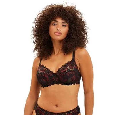 SANS COMPLEXE Arum Glitter Underwired Bra Lace Women Black and Red Glitter, & 100E