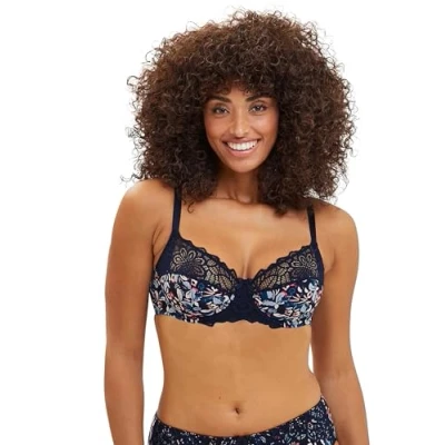 Sans Complexe Women's Flora Full Coverage Bra, Blue & Pale Pink Floral Print, 42DD