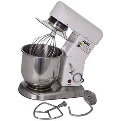 Material: steel, white lacquered, material: (boiler), stainless steel, speed continuous rotation 0-302 per minute, cover for boiler, removable dough hook and flat kneader optionally available, with whisk attachment