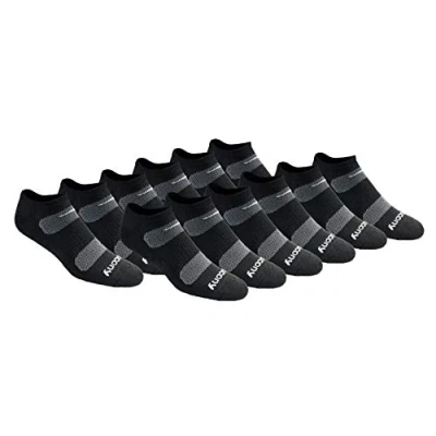 Saucony Men's Multi Pack Mesh Ventilating Comfort Fit Performance No Show Socks, Black Basic (12 Pairs), XL