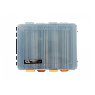 Savage Gear Lurebox 2 Sided Smoke - Available in several options - Material: transparent smoke-coloured PP material with UV protection - Very clear - Strong hinges - Tightly closing lid - Double sided design - Drainage holes for a dry inside - Ideal for hard lures Keep your lures in a perfectly organized harmony with this strong and durable, double-sided lure box! It has sturdy & flexible hinges and a tight-fitting lid to keep your gear safe. The drainage holes help keep the inside dry, and the double-sided design is perfect for storing large hard lures with treble hooks. Available in several variants. The L is suitable for many lures. The Short is suitable for shorter lures and the Long is suitable for longer lures!