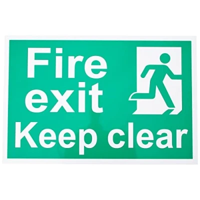 300 x 200mm Safe Condition sign - White text on green background Self adhesive semi rigid PVC "Fire exit Keep Clear" Text