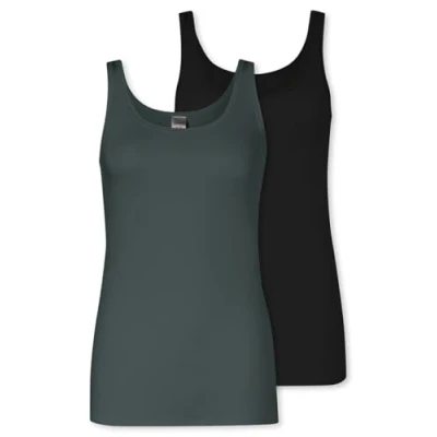 Schiesser 2 PACK Undershirt, Women's, Size: 20, Black/green