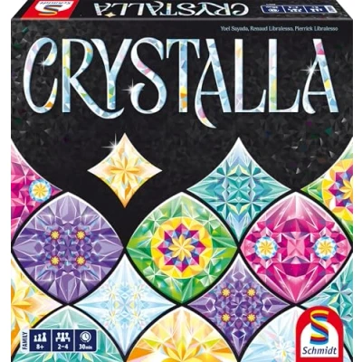 Ruby, tourmaline or diamond? In the sparkling world of Crystalla, tactical application and a pinch of luck are required to create a valuable overall picture from seven different types of crystals. But watch out! The other players also want a piece of the magnificent cake and do everything to make their own display the most punctual work of art. Number of game ends: 2-4 Age: from 8 years Time: approx. 30 minutes, Manufacturer: Schmidt Spiele