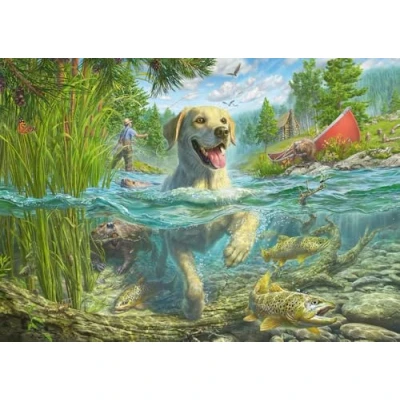 Schmidt Spiele 58557 Mark Frederickson Dog Love, Yellow Labrador on Fish Hunt, 1000 Piece Jigsaw Puzzle, Multi Colour