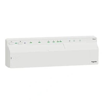 Smart multi-zone control system for underfloor heating systems Flexible room temperature regulation on site even without an app Wiser distribution strip regulates the valves of the underfloor heating for the Wiser heating control (Zigbee). Schedules, moments (scenes) and automation via the Wiser Home app.