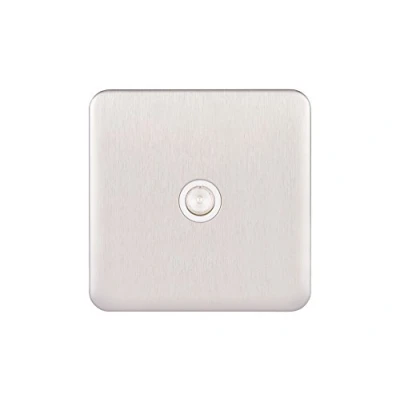 Single TV/Radio aerial socket 7 mm raised edge plate with rounded profile Removable screwless cover with a reliable clip-in system Angled terminals for easier access Backed out captive screw terminals allowing for a quicker installation Cable markings to check wire length Light grey back moulding for easier terminal identification Requires a 25 mm minimum back box